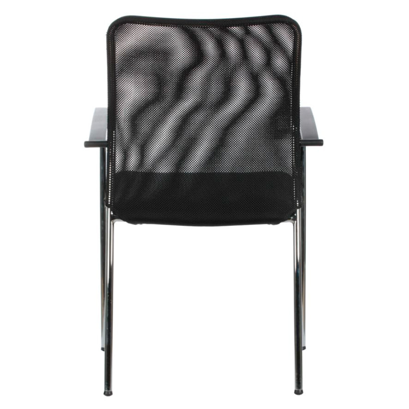 Silla de visita con estructura cuatro patas de perfil redondo cromada. Respaldo en malla negra.