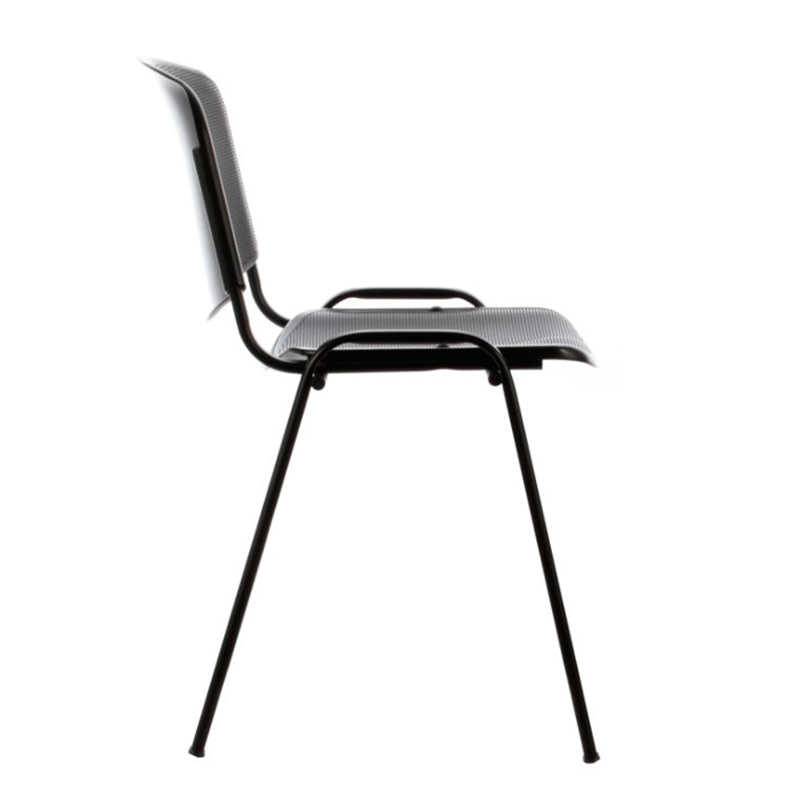 Silla de visita de estructura cuatro patas metálicas de perfil ovalado color negro. Respaldo y asiento en polipropileno color negro, fácil de limpiar.