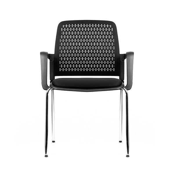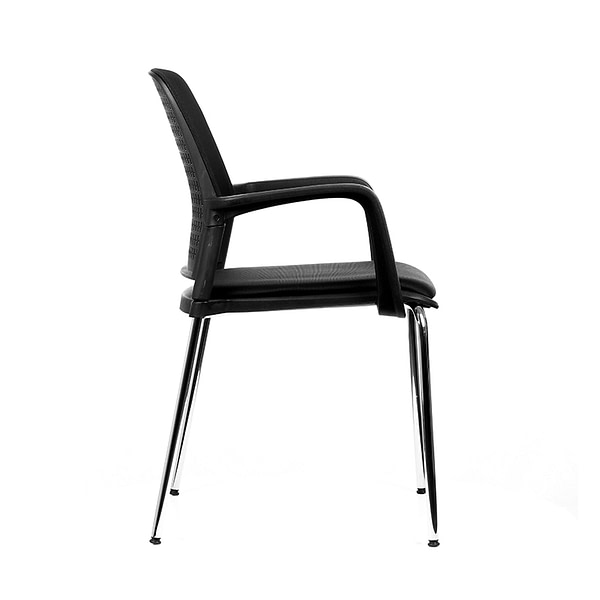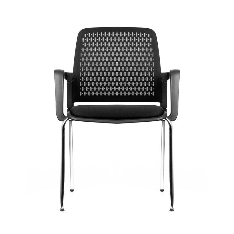 Silla de visita de estructura cuatro patas metálicas de perfil redondo cromado. Respaldo en malla,